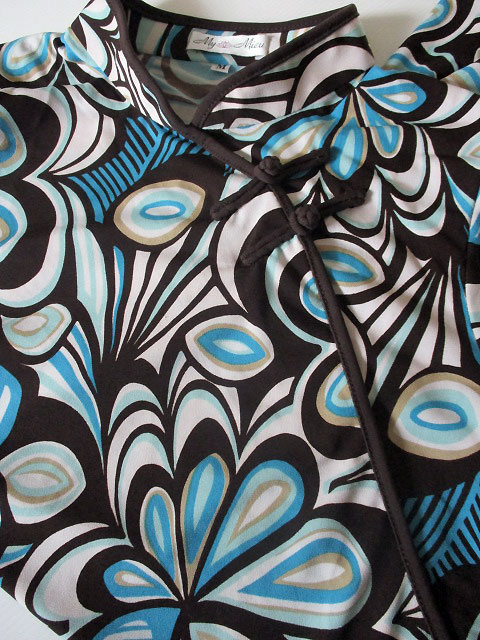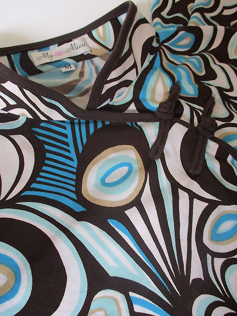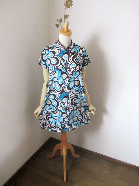 季節を問わないところもお勧めのチュニックワンピースはブルー×ブラウンのおしゃれカラーのプッチ柄!
