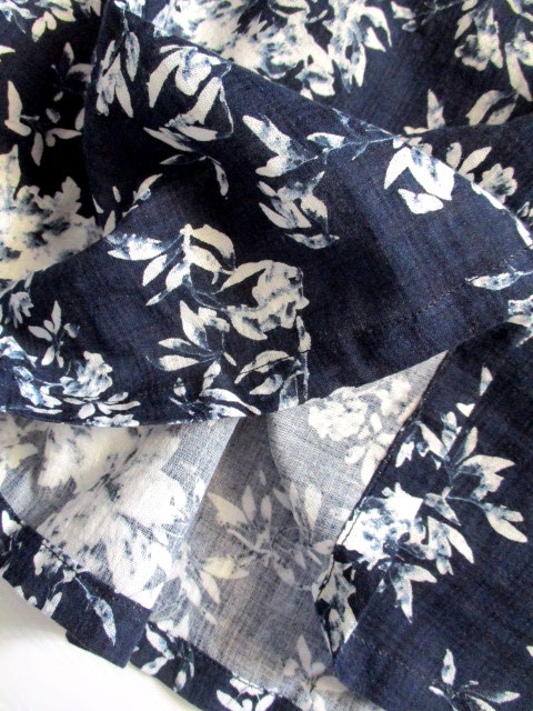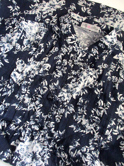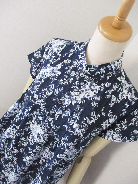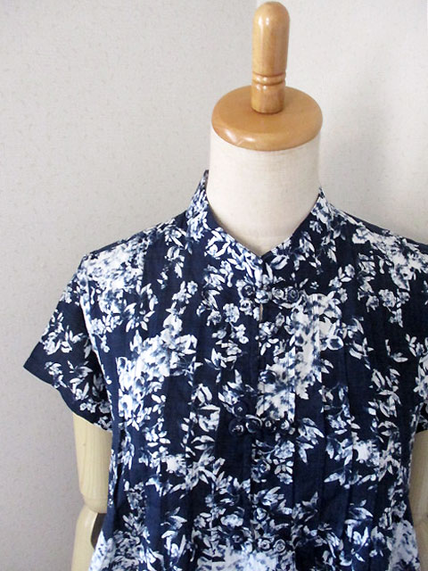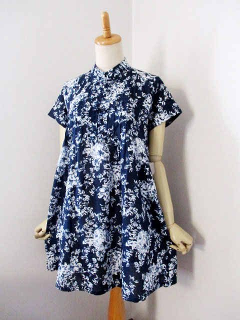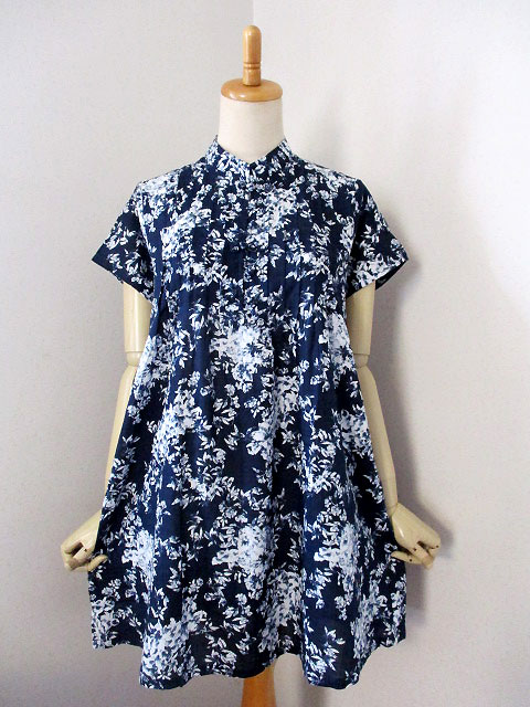 ■紺瑠璃×オフホワ小花・タックスタイルフレンチチュニックワンピース **by MyMieu**