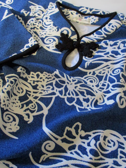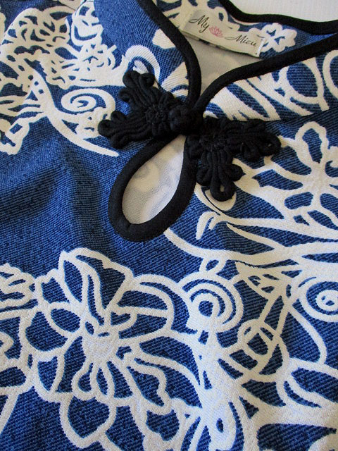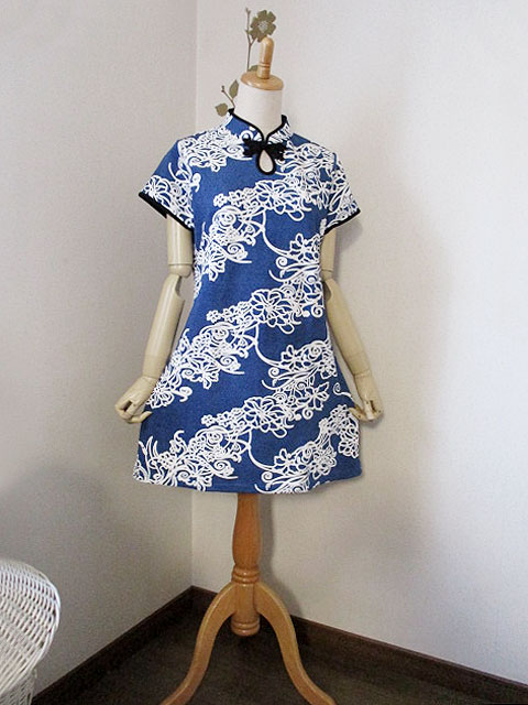 ■ブルーストレッチ×オフホワ花・シノワ花ボタンチュニックワンピース **by MyMieu**