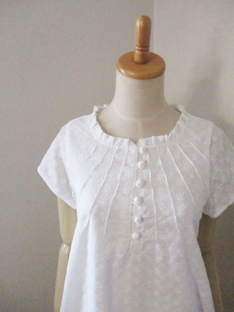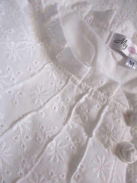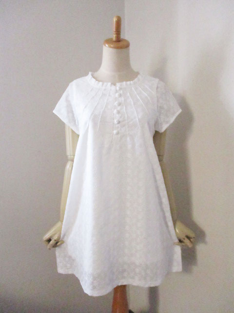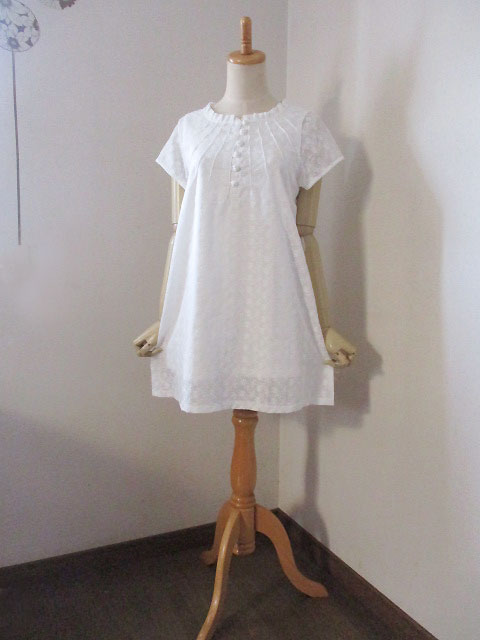 ■オフホワイトコットン総レース仕様・タック×チャイナノットチュニックワンピース **by MyMieu**