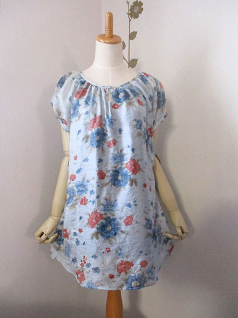 ■シルクブルー×ギャザースタイル・チャイナノット使いチュニックワンピース **by MyMieu**