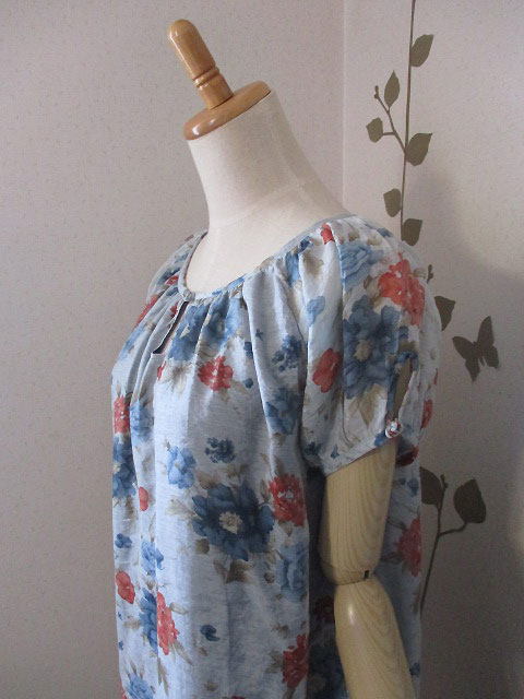 たっぷりとギャザーを入れて落ち感もきれい。パフスリーブのホールとチャイナノットも意外とスパイスになり二の腕周りをカバーします♪