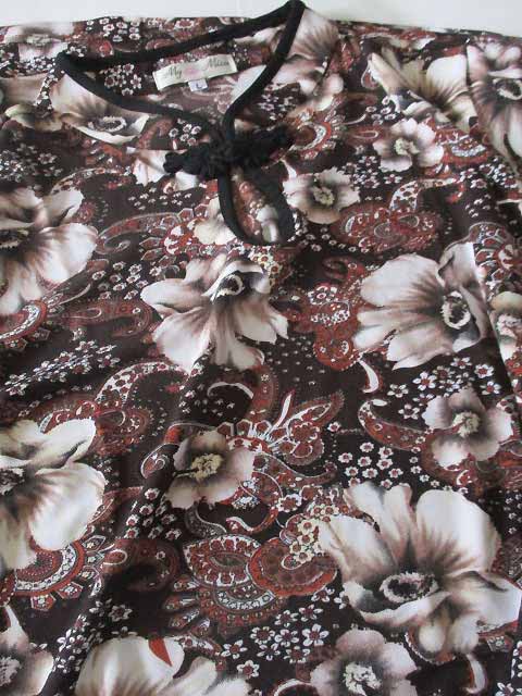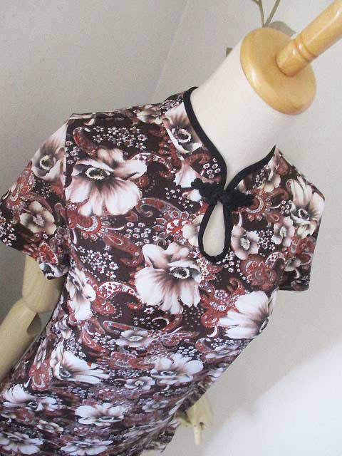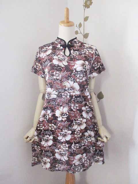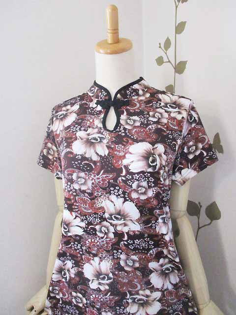 グッとシックな夏のブラウン!レッドブラウンがスパイスになり、幻想的な大花柄にシノワズリな雰囲気が加わった大人のチュニックです!