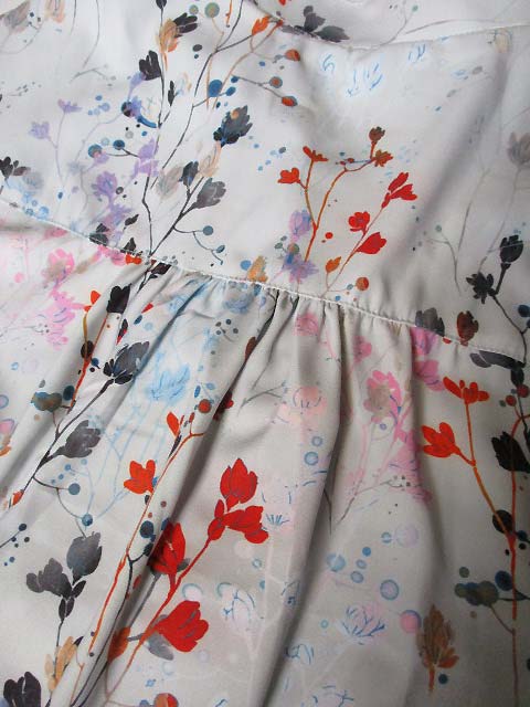 フロントのスリット部分は真ん中の花ボタン位置から下には内布をあしらって、隙間から素肌が覗くのを防止。