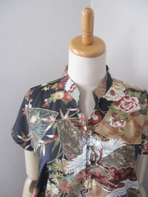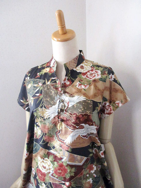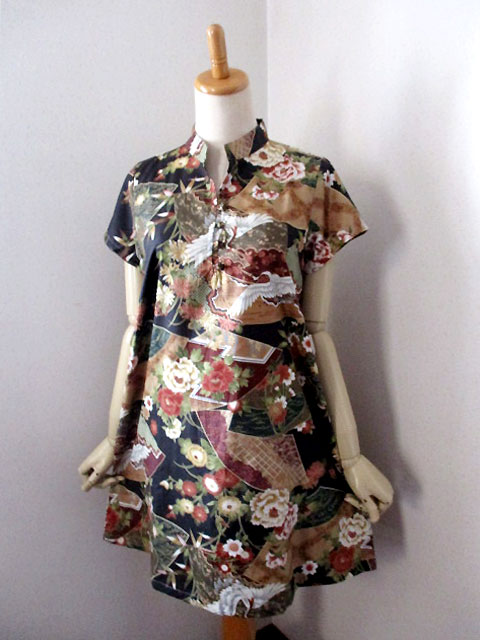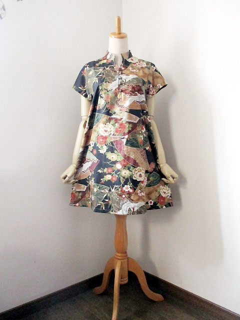■ブラック×和柄調デザイン・チャイナノットフレンチチュニックワンピース **by MyMieu**