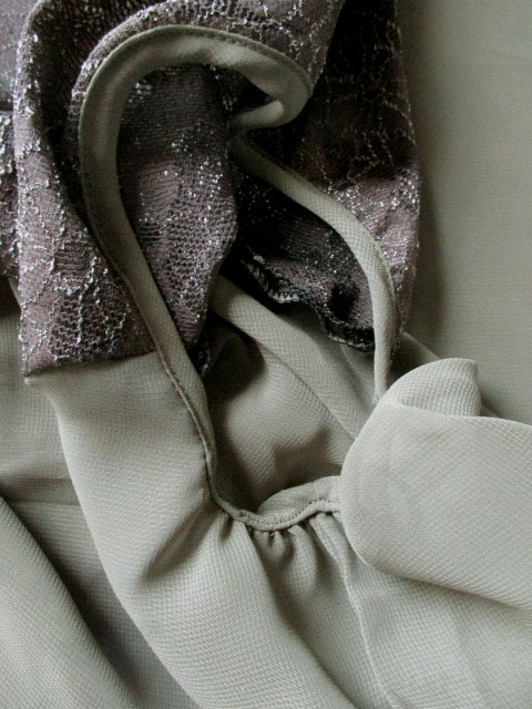 もともとのサンプルを着てみて「これは!」と思ったデザインで、フィットしたトップスと、切り替え下のギャザー&流れるようなAラインのシルエットがとっても綺麗♪