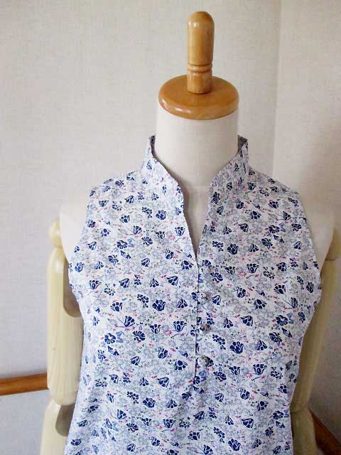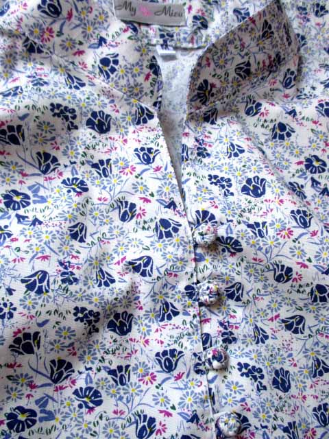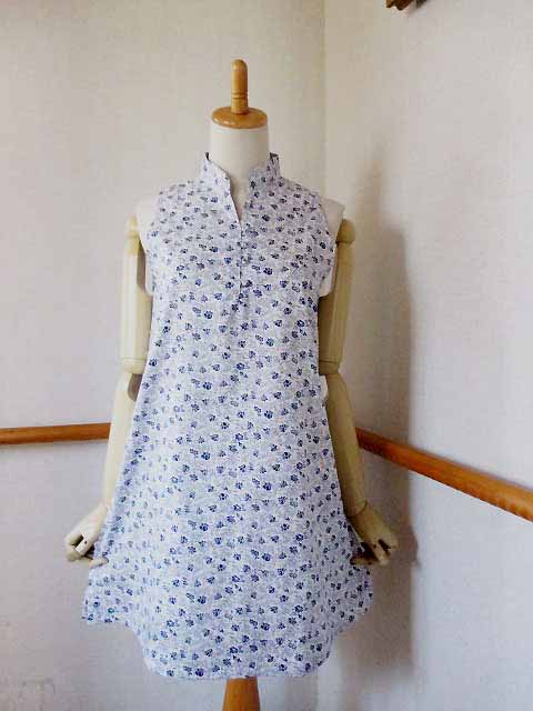 丸みを帯びた立ち襟から浅めのVネック、そしてハンドメイドのチャイナノットが4つ並んだミミュウ定番のチュニックワンピで、