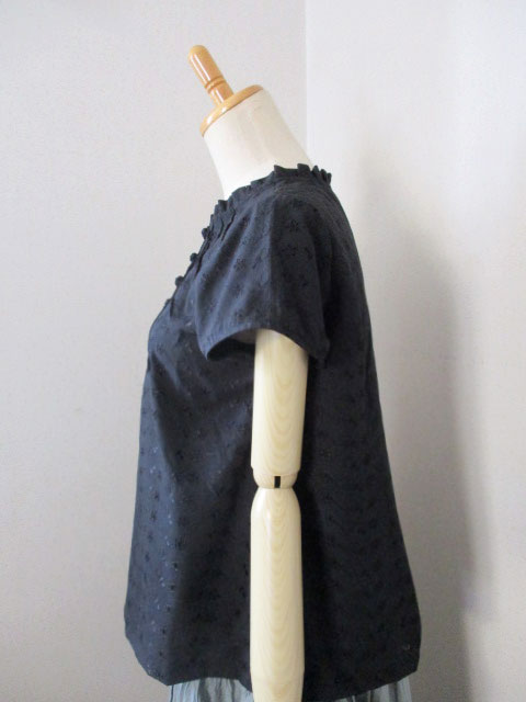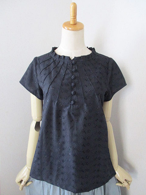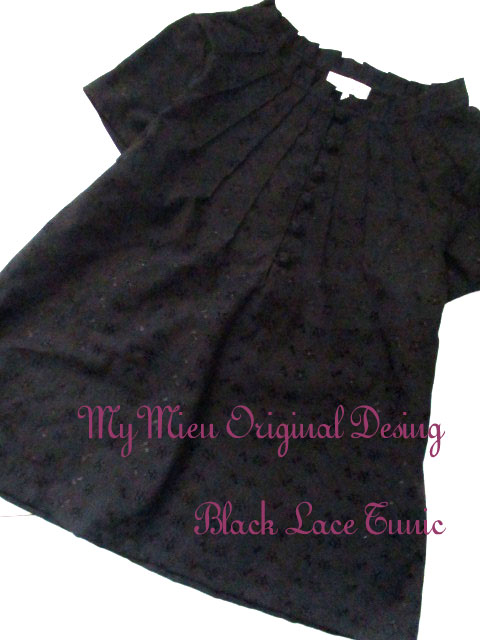■ブラックレースコットン・チャイナノット×細タックフレンチスリーブチュニック **by MyMieu**