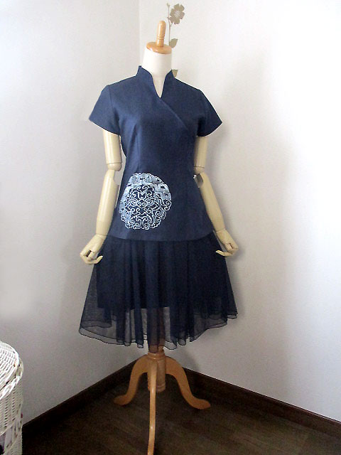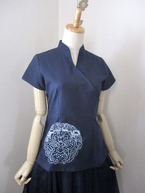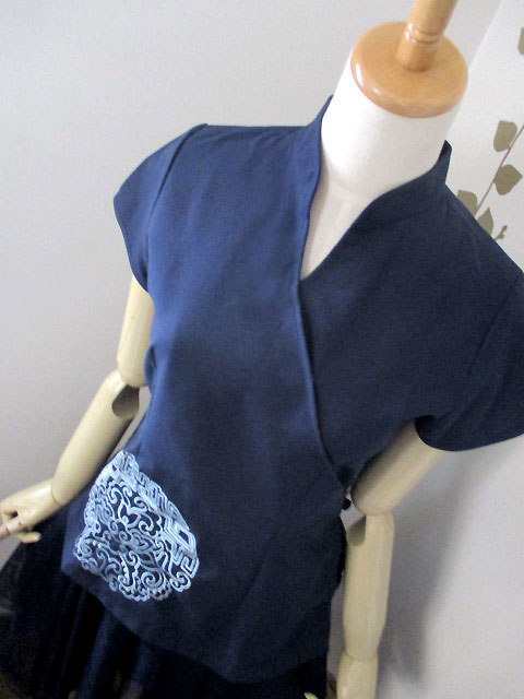 ■濃紺×シノワ花ブルー刺繍・・チャイナノットカシュクールチュニック **by Mymieu**