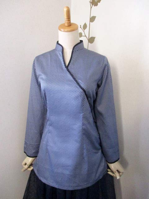 ■ダークブルー×オーバルドット・チャイナノットカシュクールロングチュニック **by Mymieu**