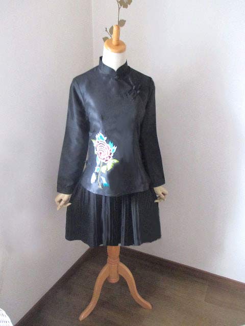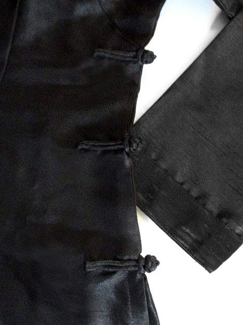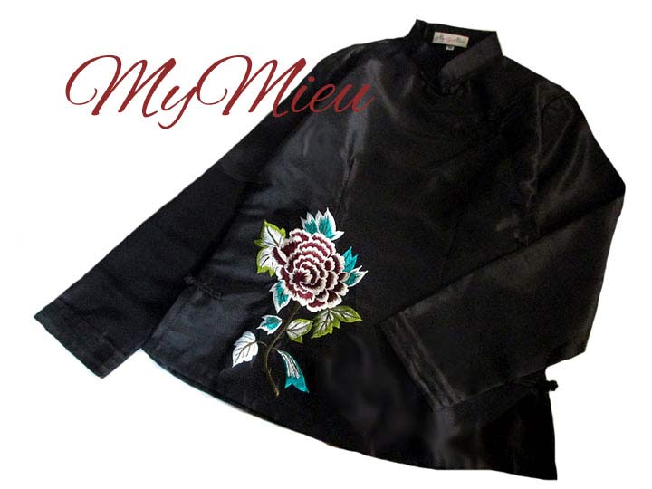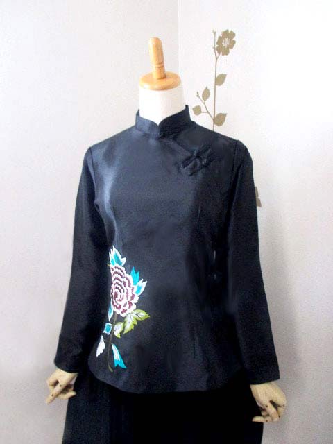 ■ブラックタフタ×シノワ花刺繍・チャイナストレートボタンアオザイブラウス **by MyMieu**