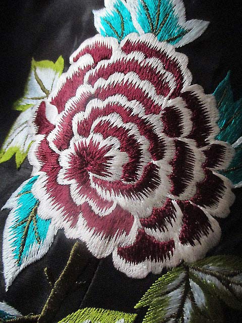 ミミュウオリジナルで何度か使っているシノワズリで大胆な花刺繍は深みのある臙脂とオフホワイトのコントラストが印象的です♪