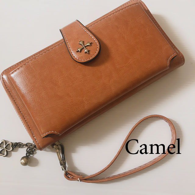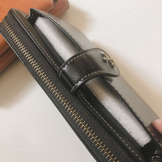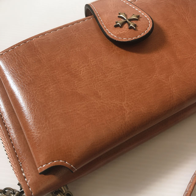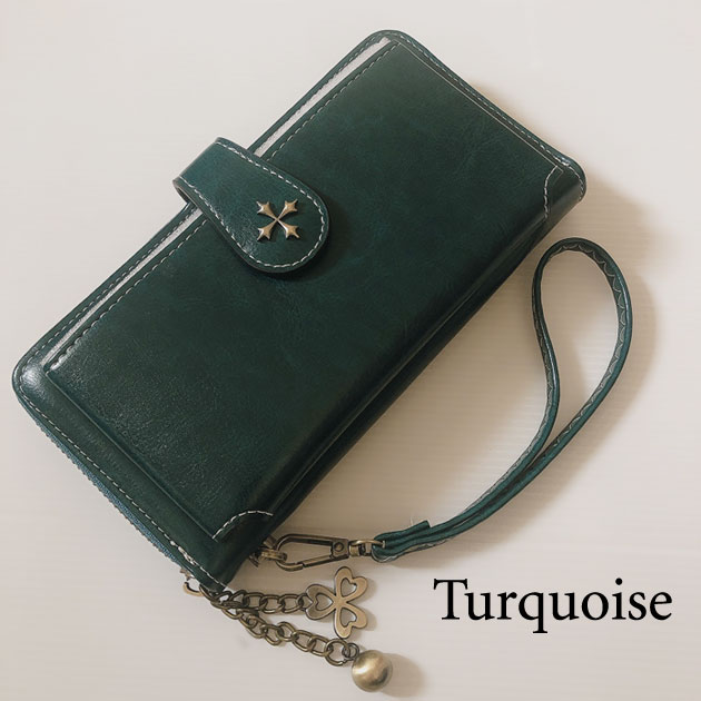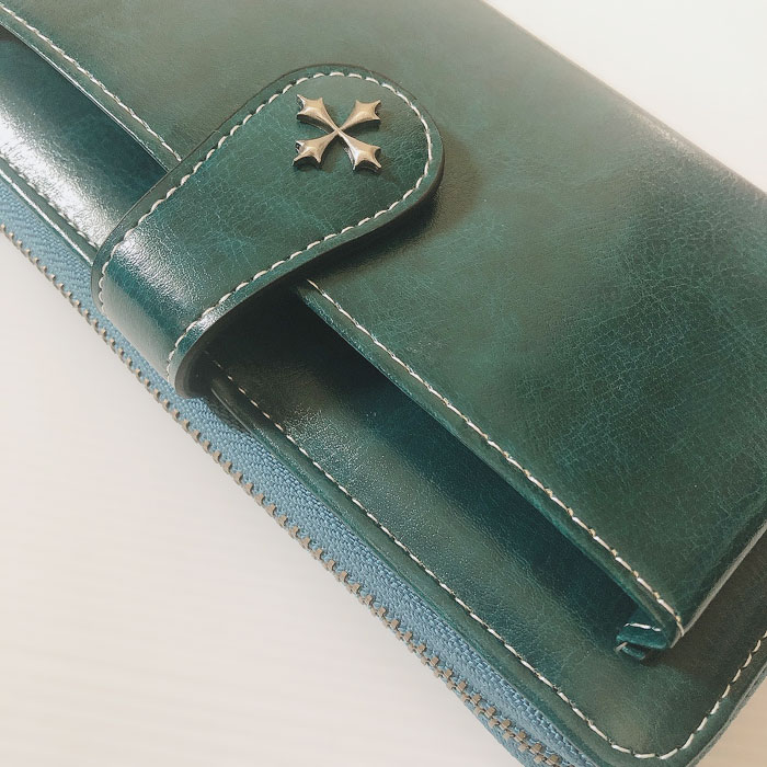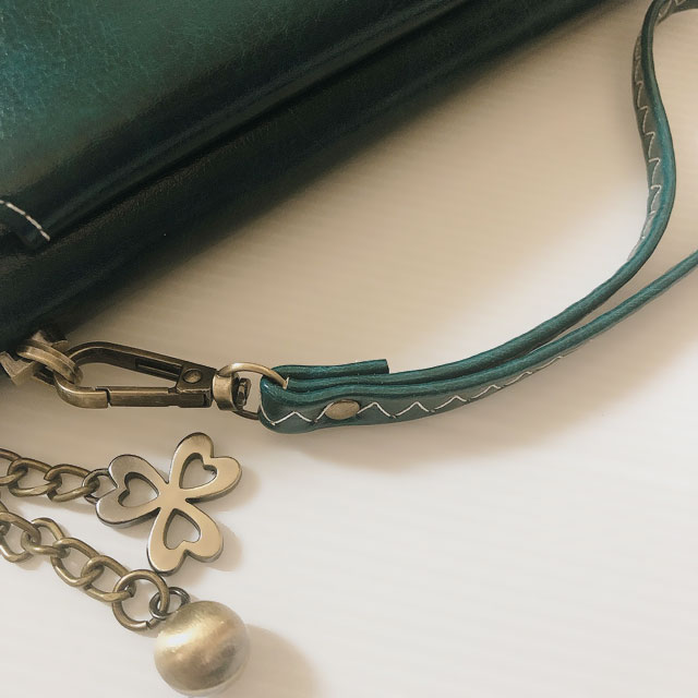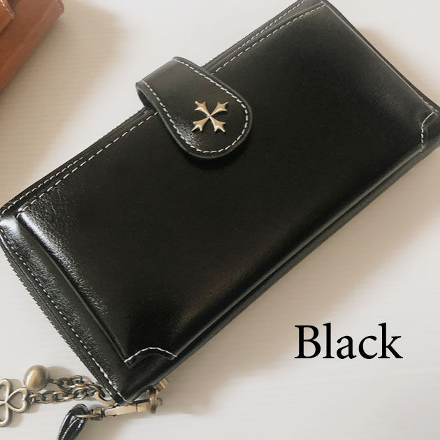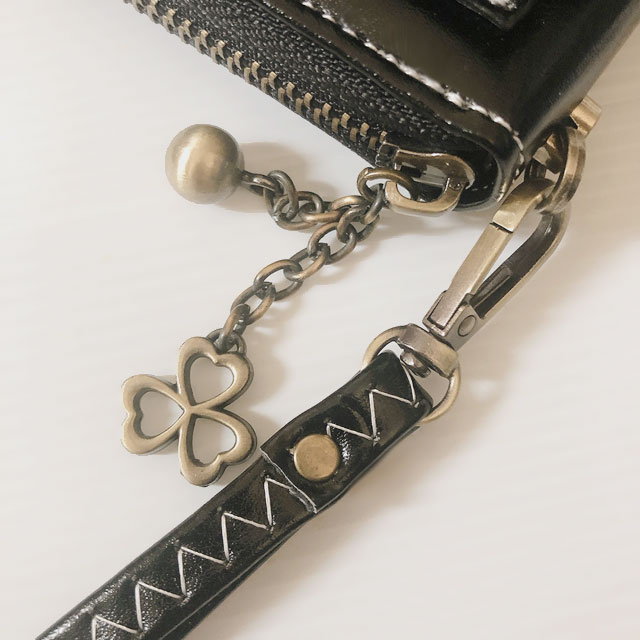 ■クロス×クローバーチャーム使い・スマホポケット付きラウンドファスナー長財布